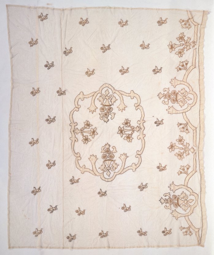 بقچه حمام و میقوه عروس از جنس مخمل ابریشم دوزی اواخر قرن 19، ازمیر، اهدایی جین