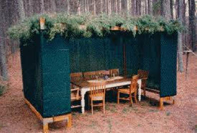 درست كردن سايبان با برگ هاي درختان و آويختن انواع ميوه ها به سقف اين سايبان نشان