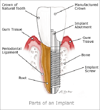 در یک توضیح بسیار خلاصه شده و کلی می توان گفت ایمپلنت از 3 جزء اصلی تشکیل شده