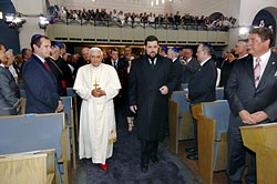 بنابراين گزارش پاپ بنديك شانزدهم دومين رهبر مسيحيان جهان طي 2000 سال گذشته بود كه از يك كنيسه ديدار كرد. پيش از اين پاپ «ژان پل دوم»، رهبر فقيد كاتوليكهاي جهان در سال 1986 از يك كنيسه در رم ديدن كرده بود. پاپ بيشتر اعلام كرده بود قصد دارد با پيروان تمامي اديان ديگر رابطهاي دوستانه ايجاد كند.