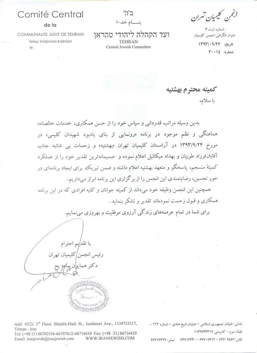قدر دانی از کمیته محترم بهشتیه
