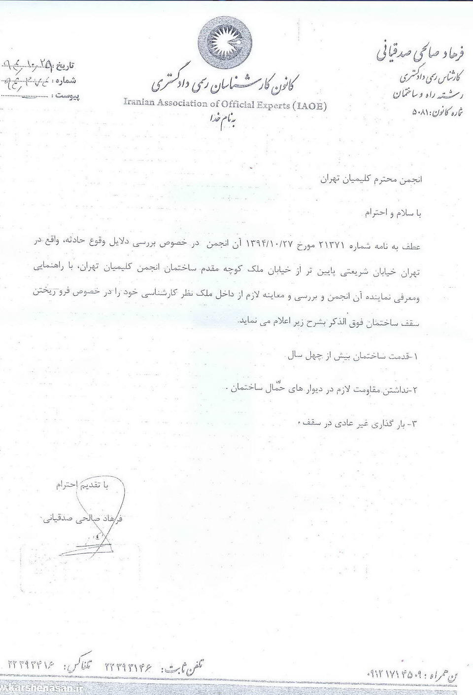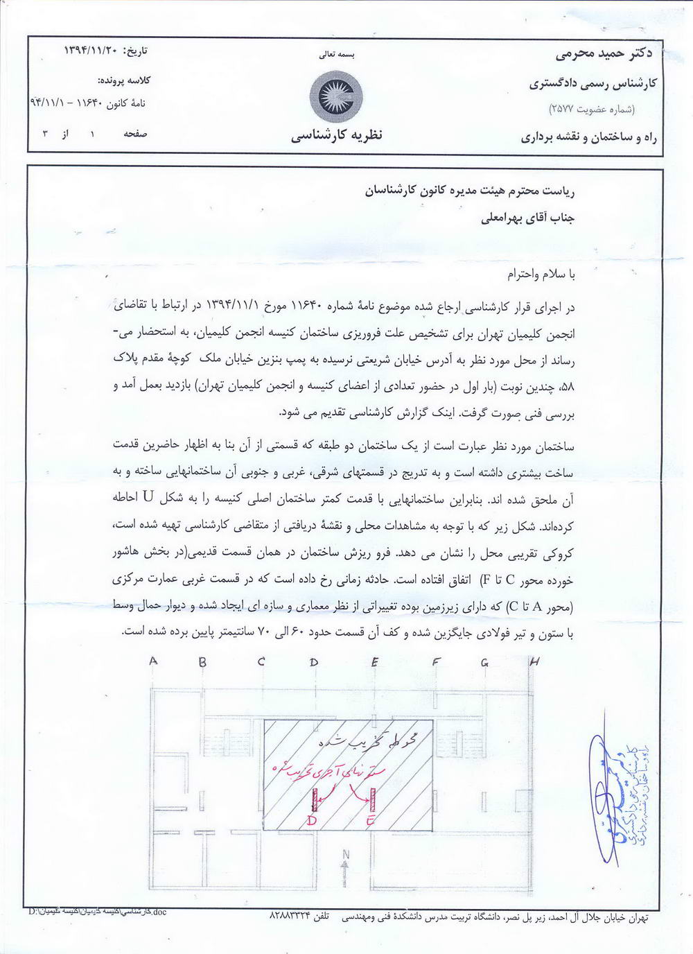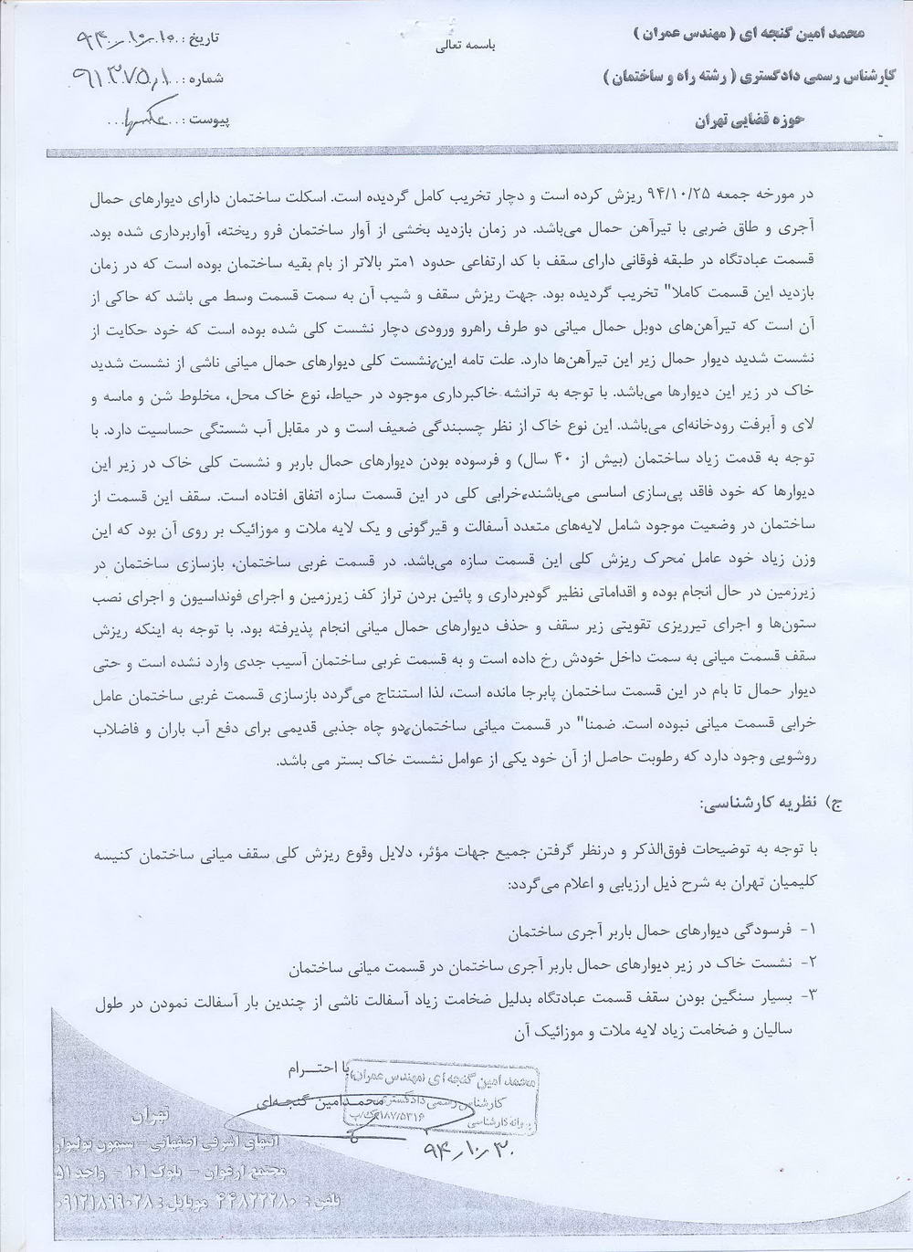 اینک سه نظر کارشناسی استعلام شده خدمت جامعه عزیز تقدیم می گردد. شایان ذکر است یک گزارش نیز از طرف سازمان نظام مهندسی ارائه شده که با گزارش اول و دوم مطابقت دارد.