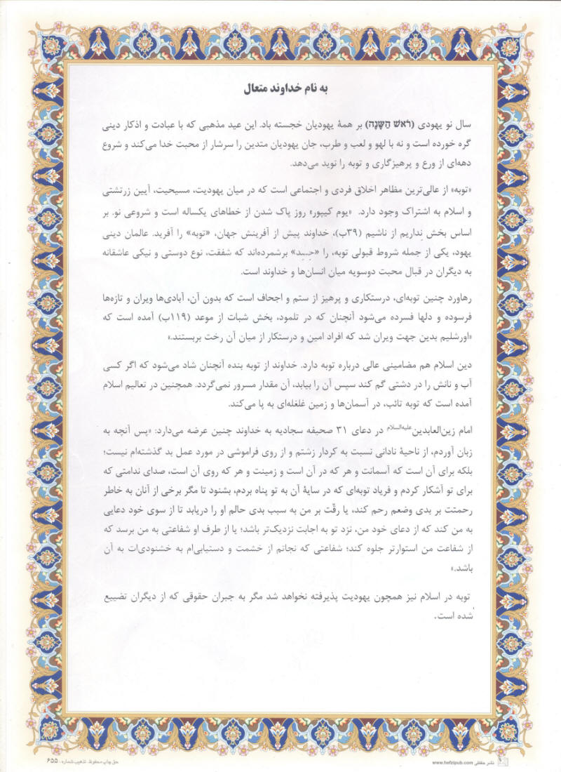27 شهریورماه، همزمان با آغاز سال نوی یهودیان، جمعی از روحانیون حوزه علمیه تهران