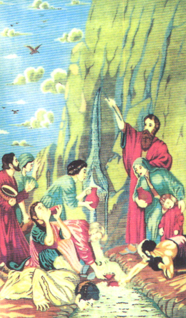 4. در سمت راست قالیچه، تصویر حضرت موسی را در کنار آب گوارایی که از سنگ خارا جاری ساخته می‌بینیم.