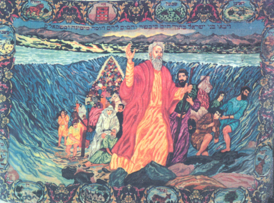 قالیچه تصویری عبور حضرت موسی(ع) و قومش از نیل
