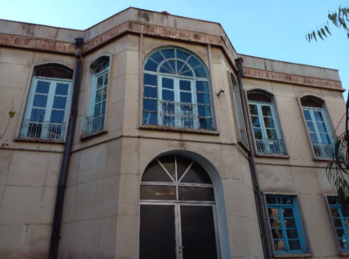 نمای اصلی بنای کنیسای تاریخی حئیم به همراه ورودی آن .